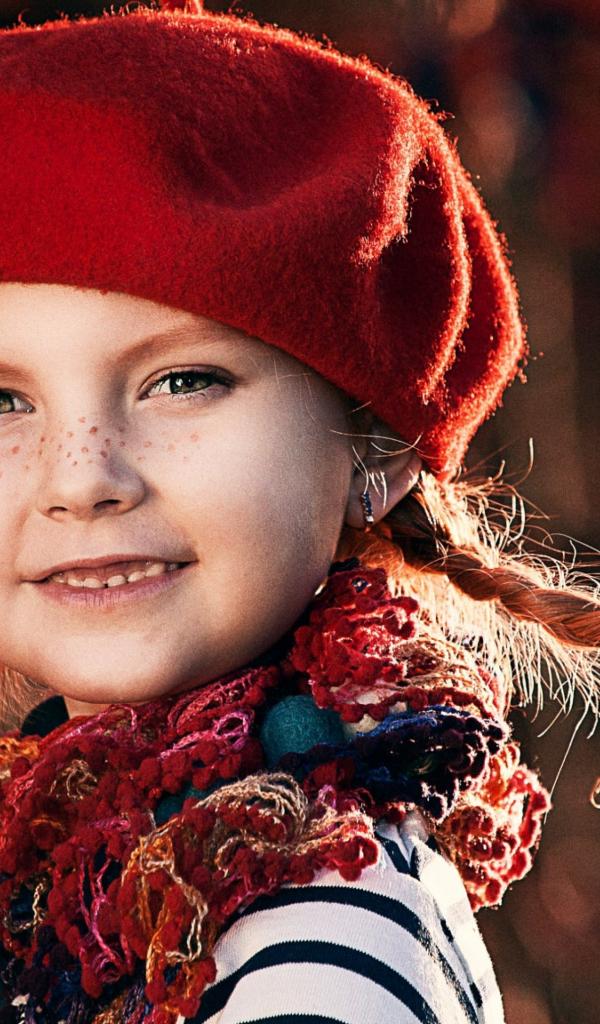 Wallpaper Funny little girl with pigtails in a red beret