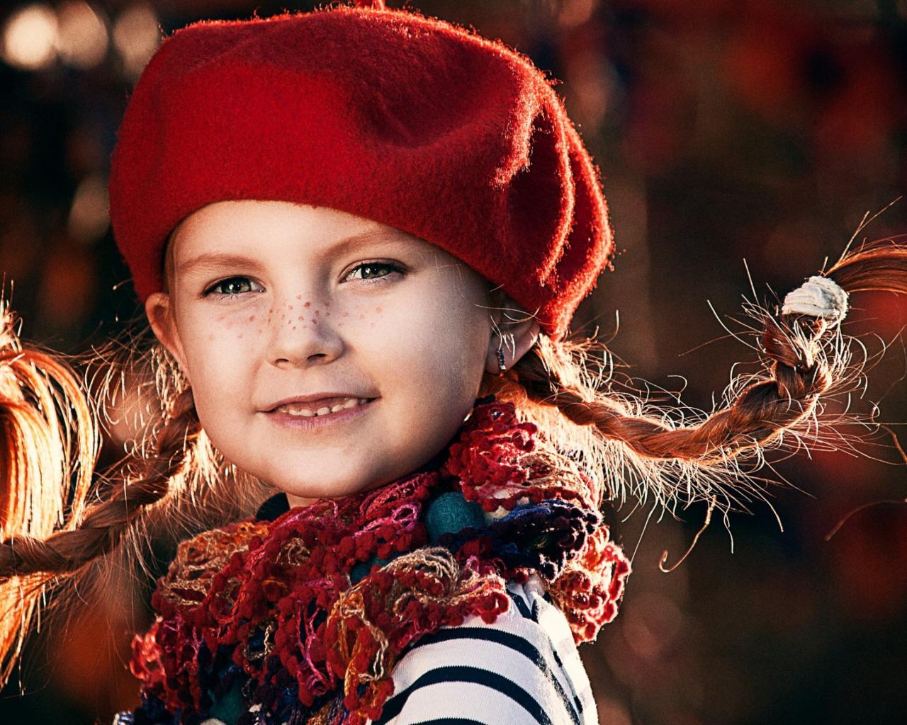 Wallpaper Funny little girl with pigtails in a red beret