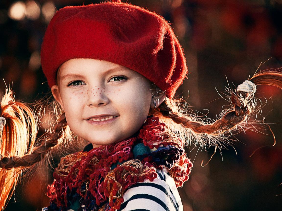 Wallpaper Funny little girl with pigtails in a red beret