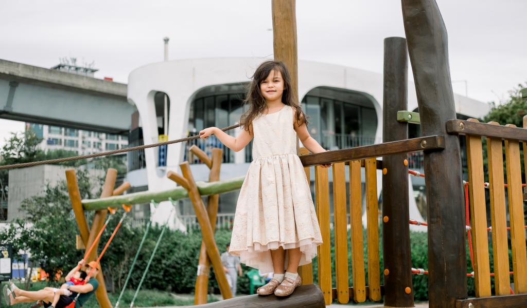 Wallpaper Little girl stands on the playground