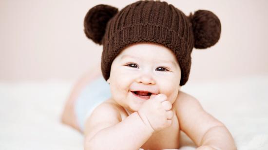 Wallpaper Smiling nursing baby in brown hat