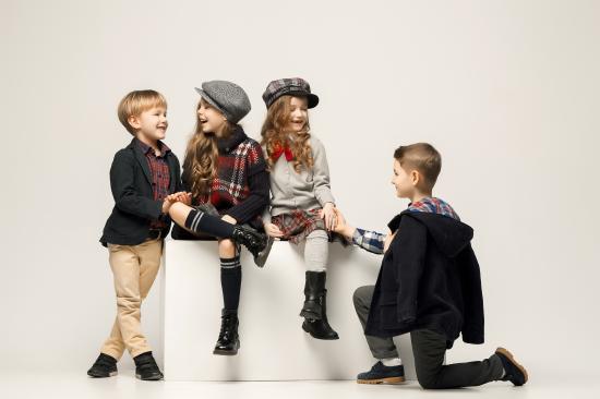 Wallpaper Little stylish kids on gray background