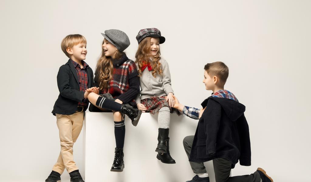 Wallpaper Little stylish kids on gray background