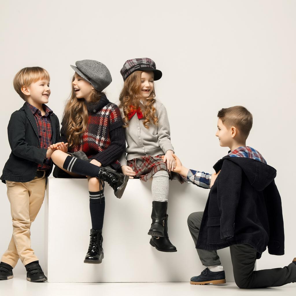Wallpaper Little stylish kids on gray background