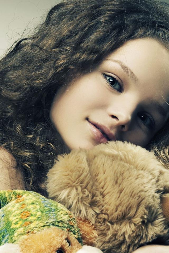 Wallpaper Beautiful girl with long hair with a bear in her arms