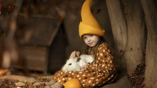 Wallpaper Little funny girl in a cap with a rabbit