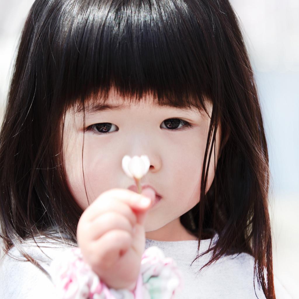 Wallpaper Little asian girl with flower