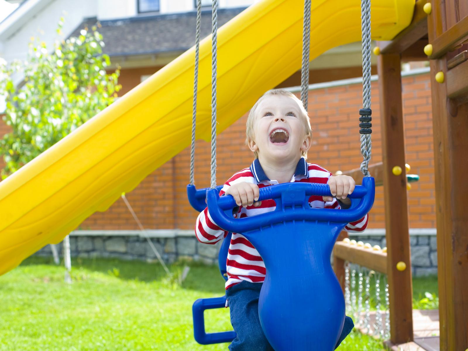 Wallpaper Smiling girl in a beautiful dress rides on a swing