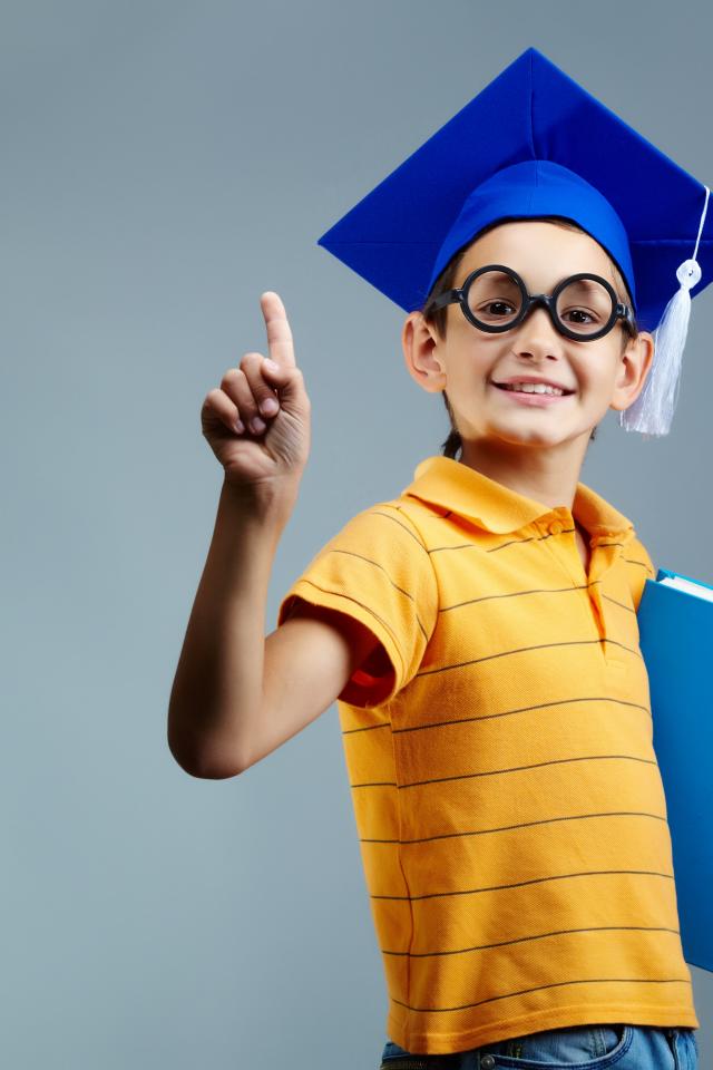 Wallpaper Little scientist boy with book in hand