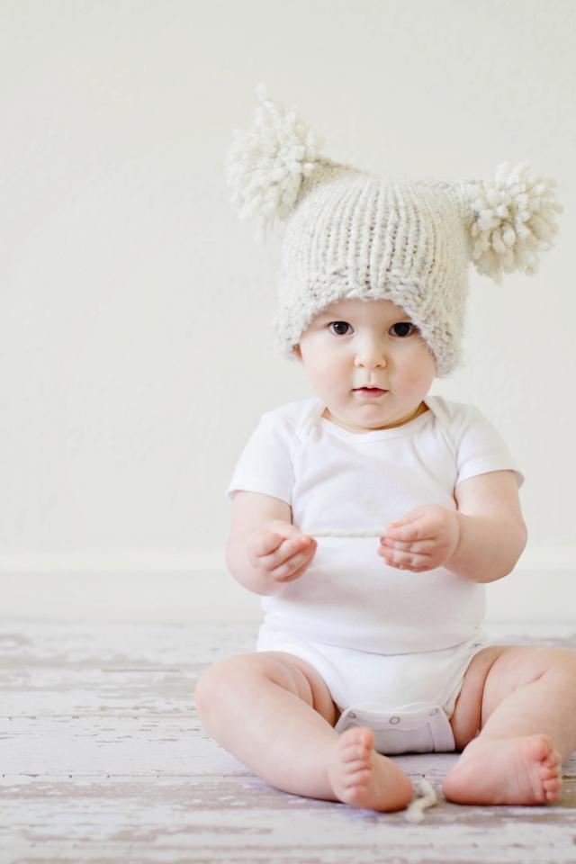 Wallpaper Small nursing baby in a bodysuit with a cap on his head