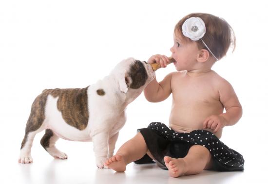 Wallpaper Little girl with cute puppy on a white background