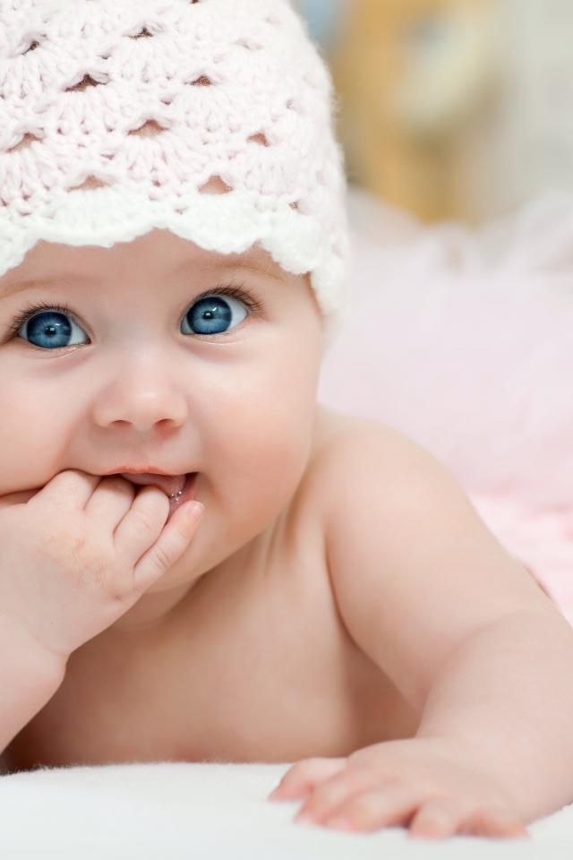 » Wallpaper Cute blue-eyed baby in a pink hat