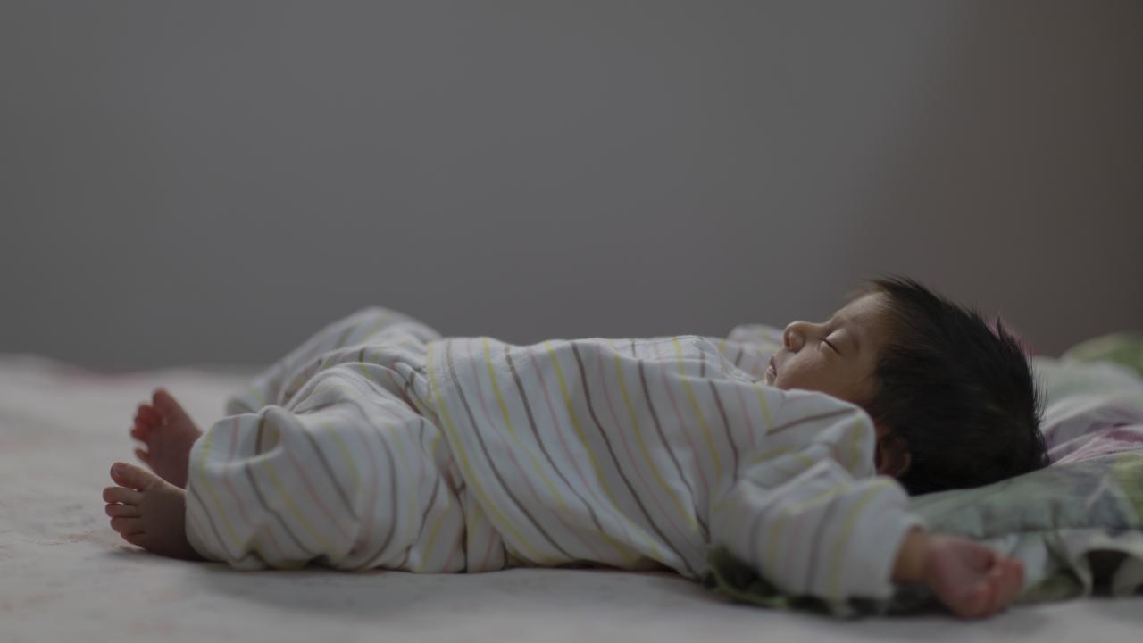 Wallpaper Little sleeping nursing baby on the bed