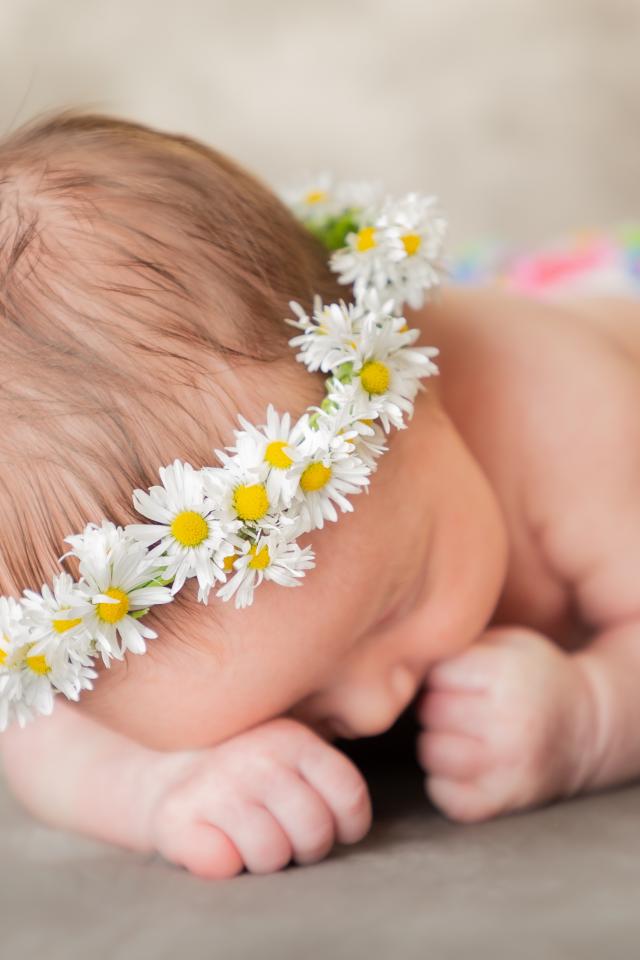 Wallpaper Sleeping baby in a wreath of daisies