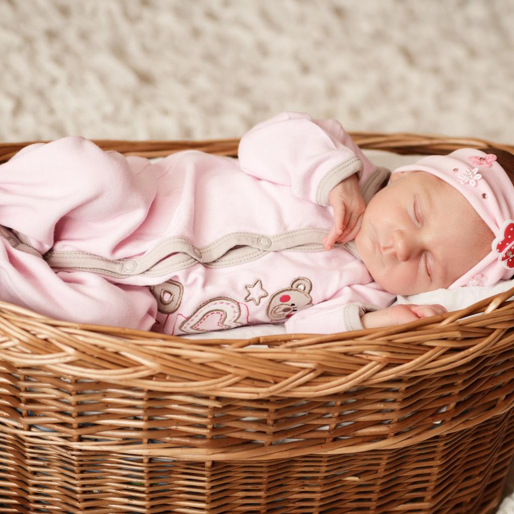 Wallpaper Little newborn girl in a pink suit sleeps in a basket