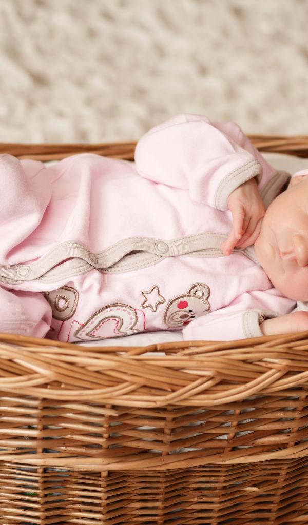 Wallpaper Little newborn girl in a pink suit sleeps in a basket