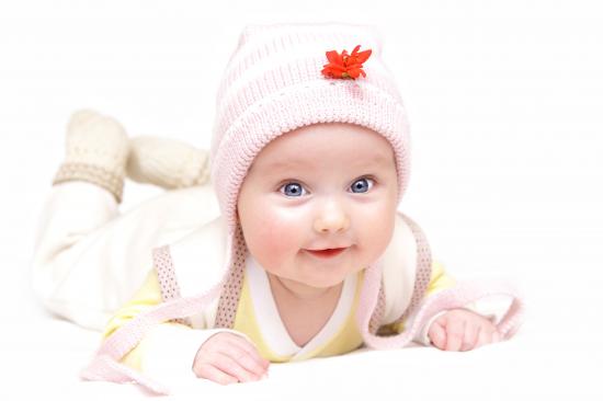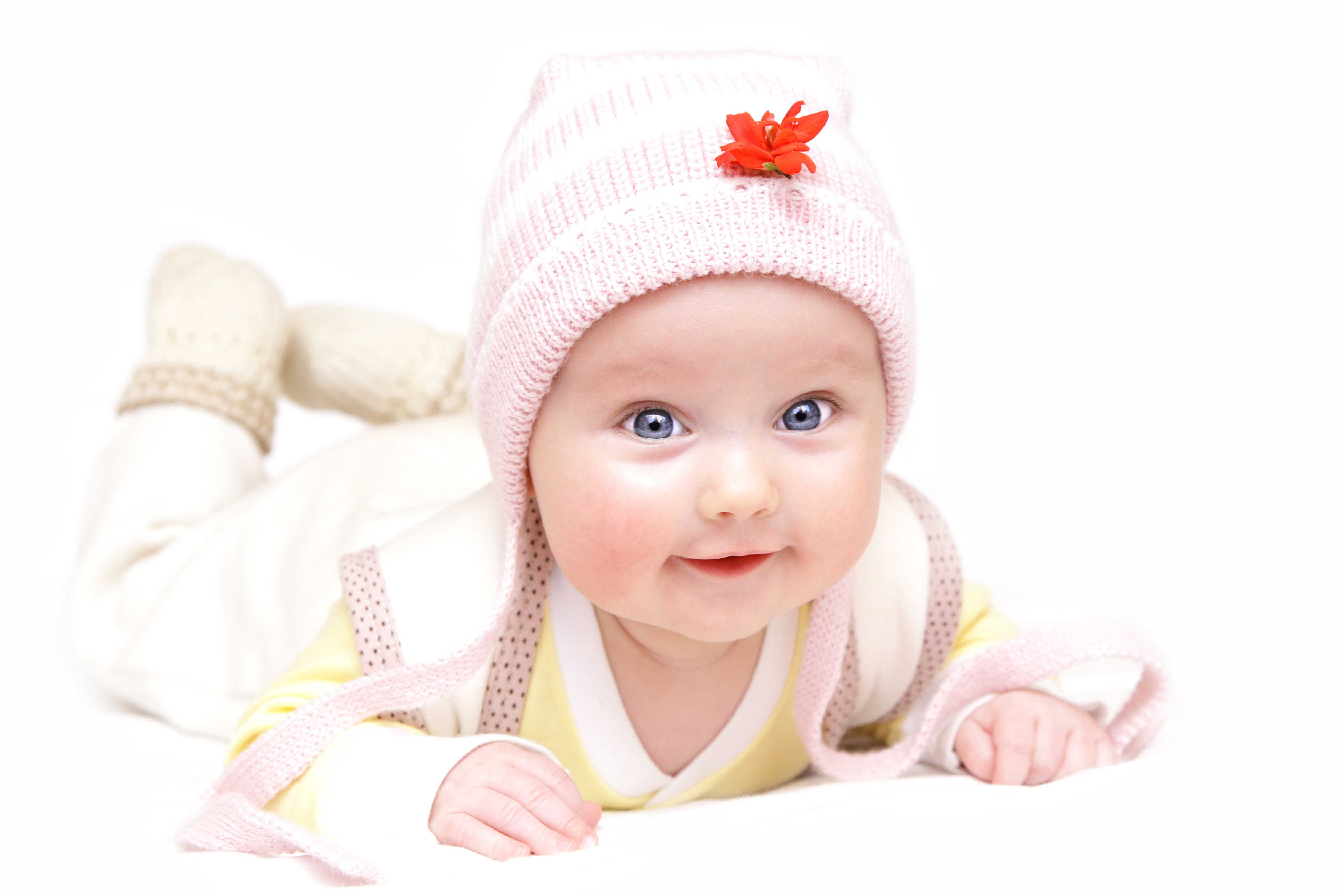 Wallpaper Blue-eyed baby in a red Santa Claus hat