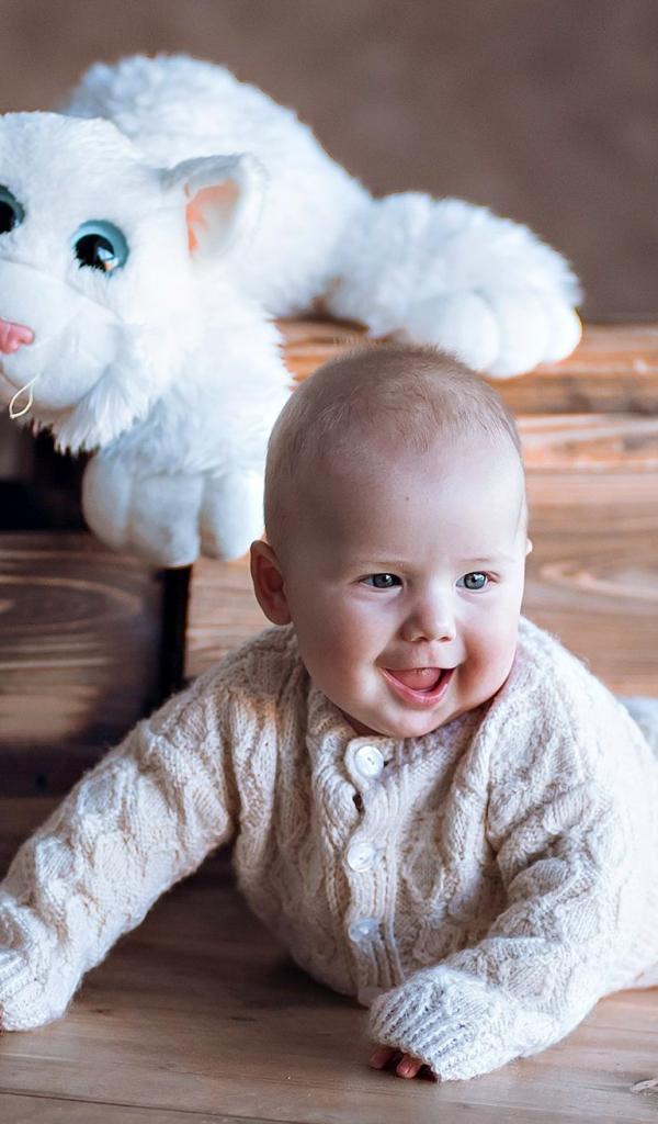 Wallpaper Cheerful nursing baby with a toy car