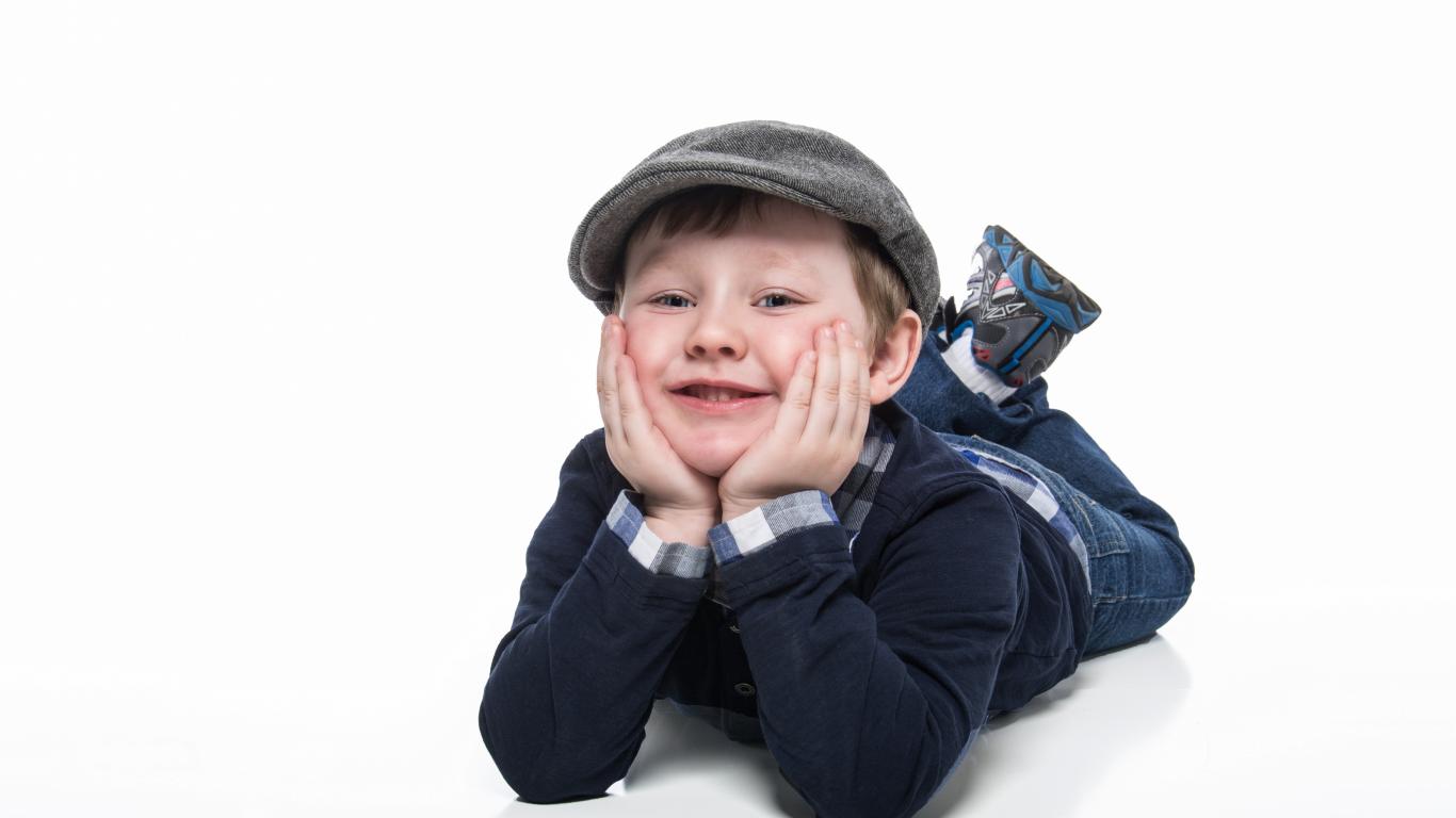 Wallpaper Little boy in a cap on a white background
