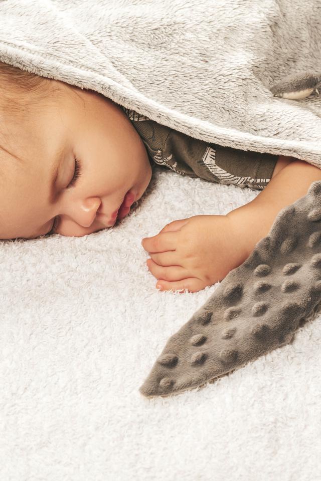 Wallpaper Little baby sleeping with a toy under a blanket