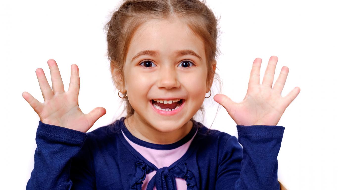 Wallpaper Cheerful little girl with raised hands