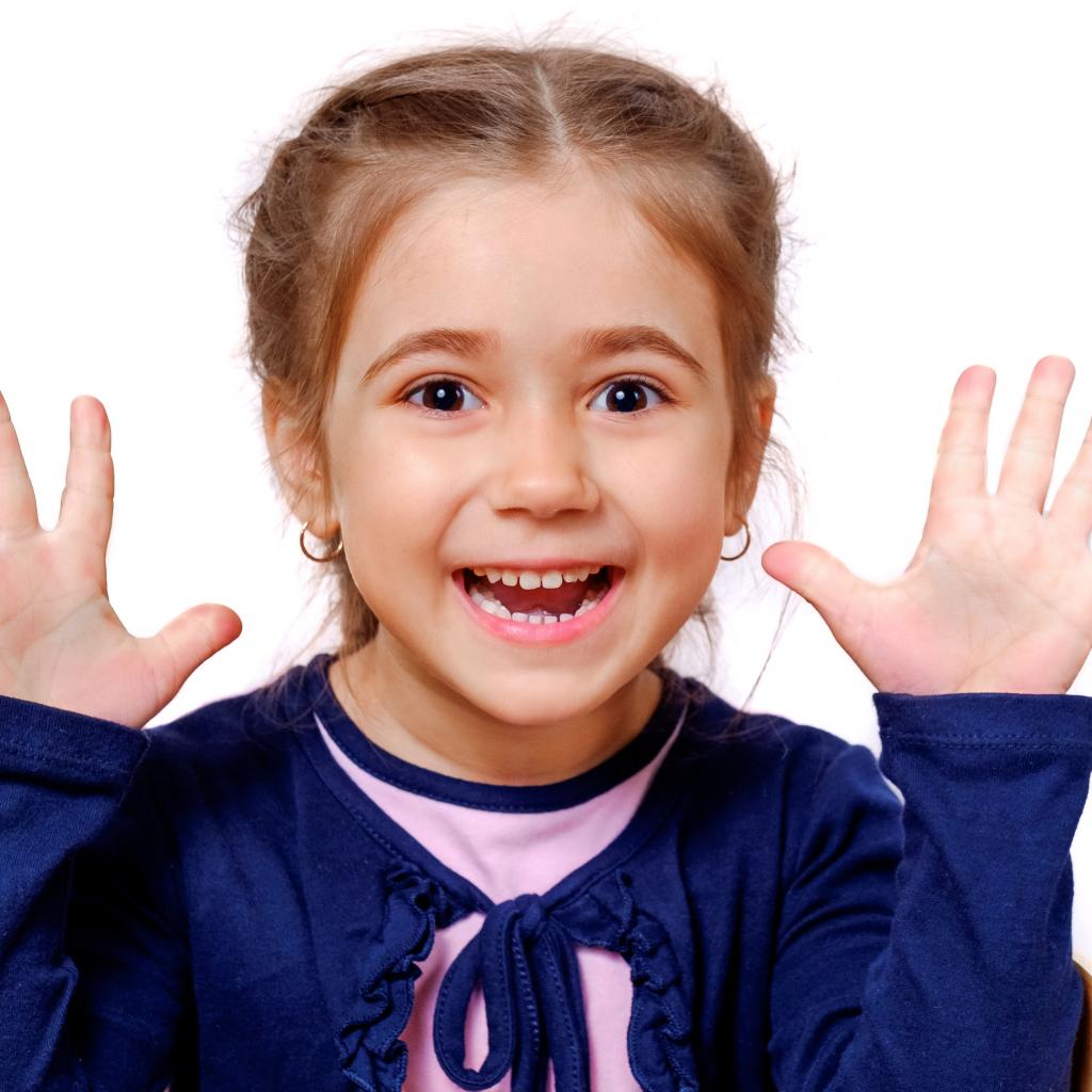 Wallpaper Cheerful little girl with raised hands