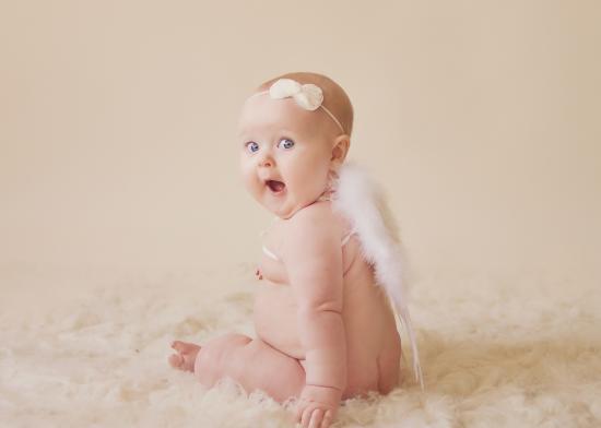 Wallpaper Surprised infant with white wings behind his back