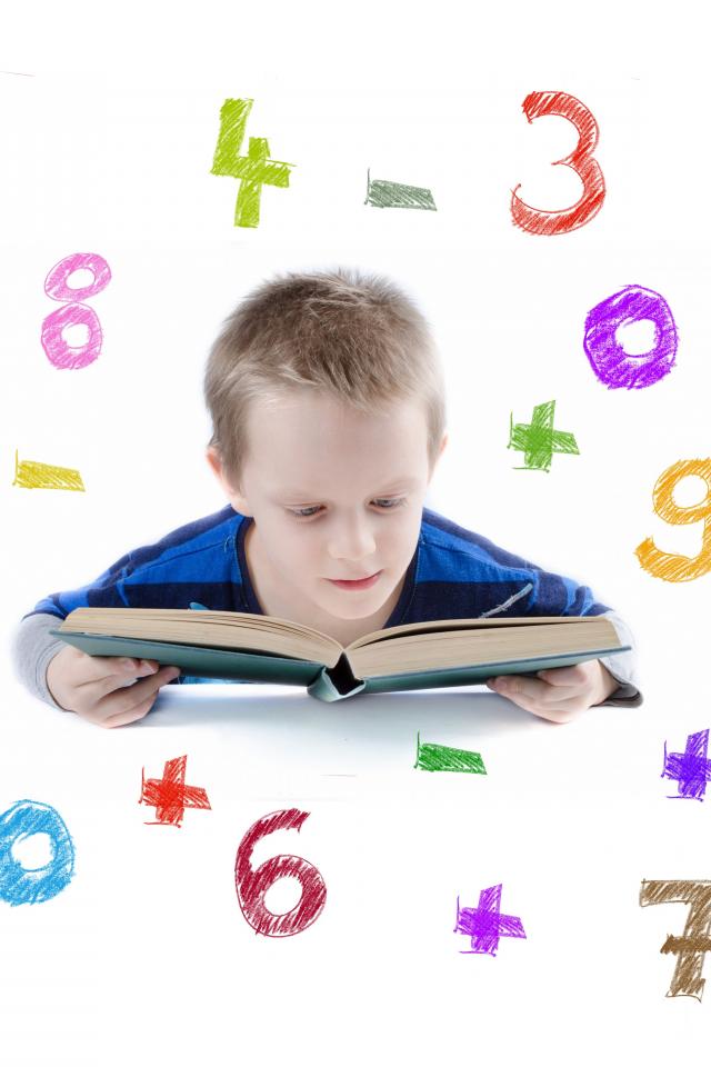 Wallpaper Boy reading a book on a white background with numbers