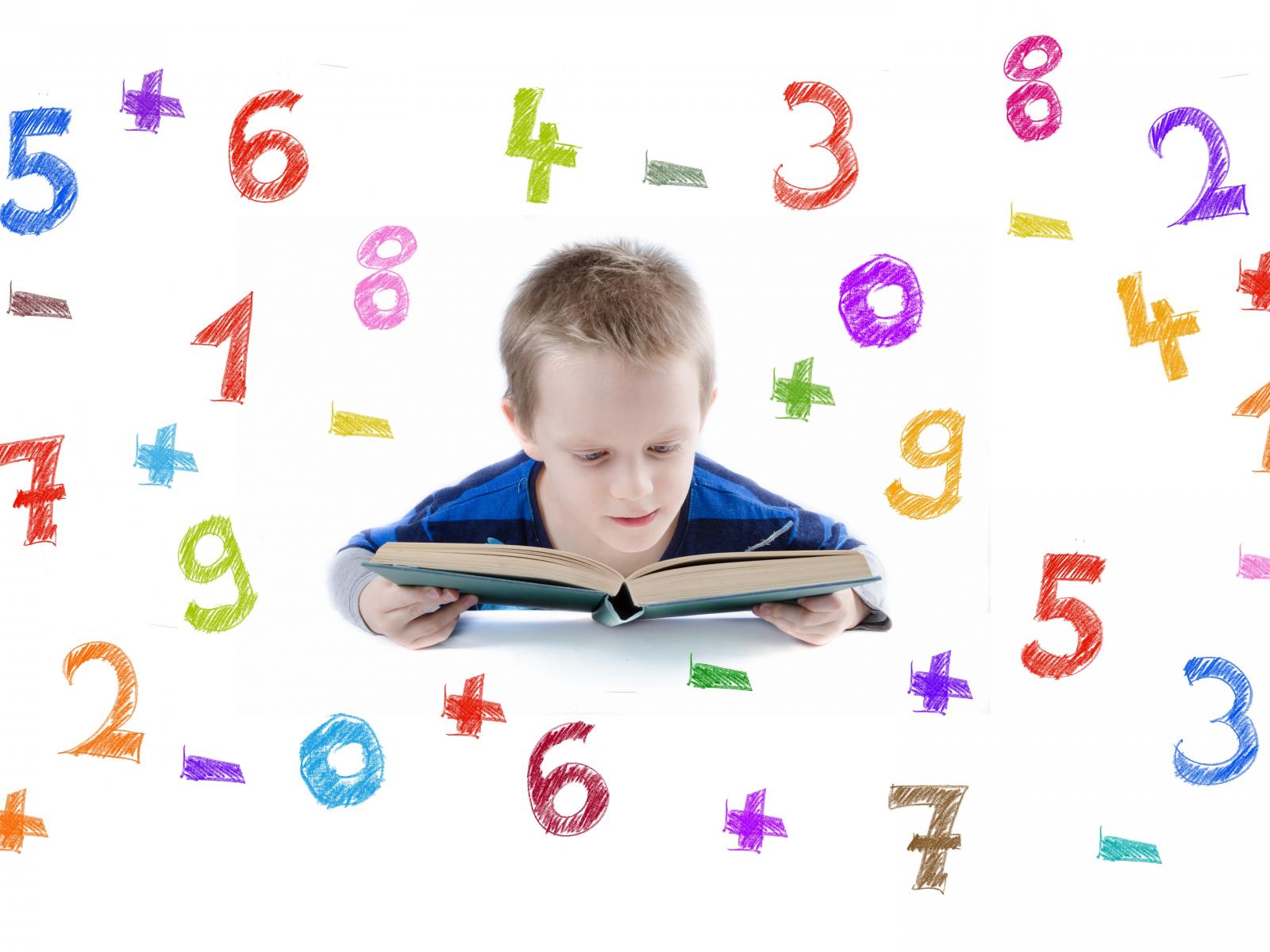 Wallpaper Boy reading a book on a white background with numbers