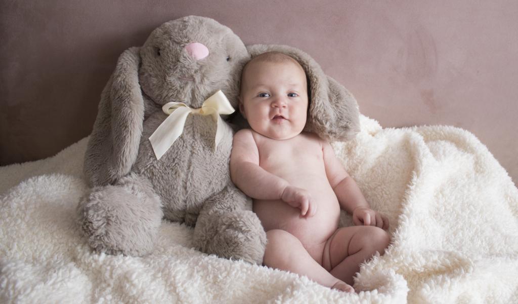 Wallpaper Little child with a toy sits against the wall