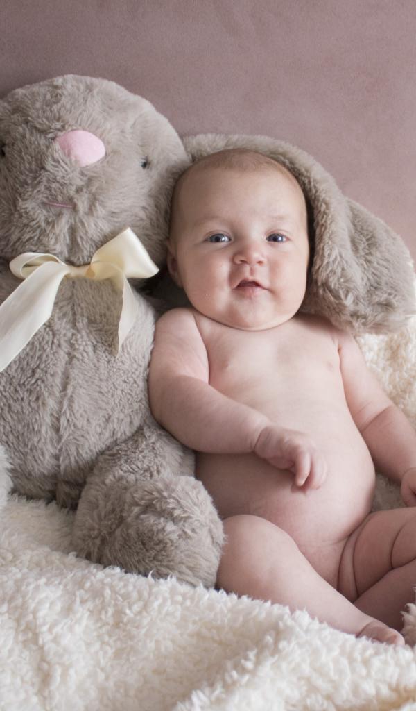 Wallpaper Little child with a toy sits against the wall