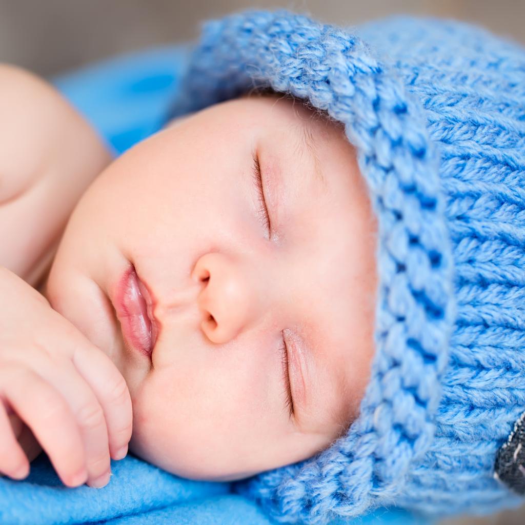 Wallpaper Little sleeping nursing baby in a blue knitted hat