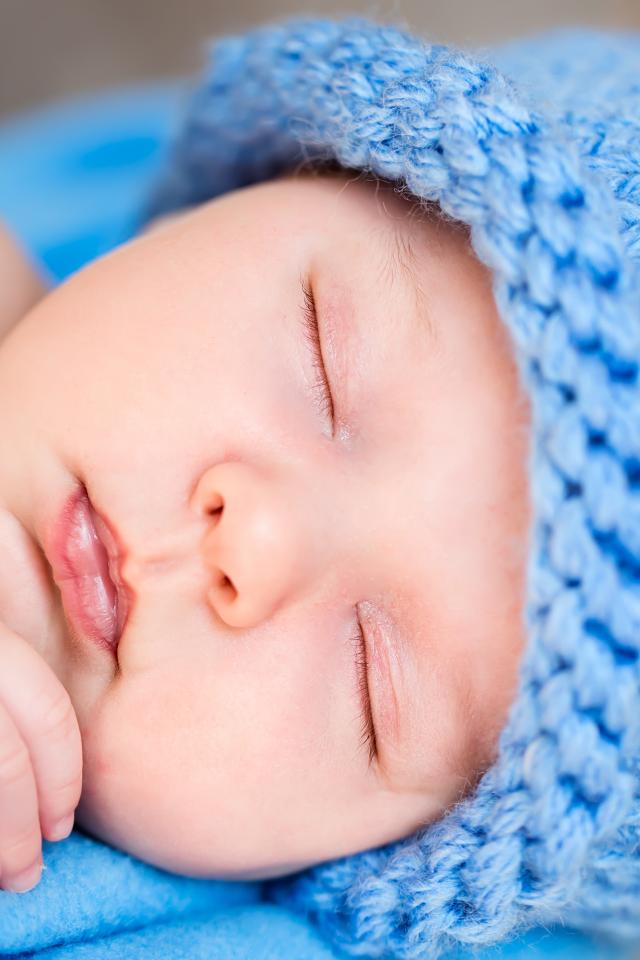 Wallpaper Little sleeping nursing baby in a blue knitted hat