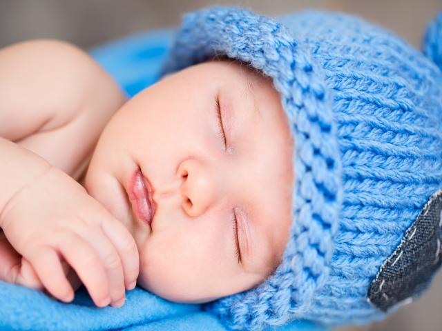 Wallpaper Little sleeping nursing baby in a blue knitted hat
