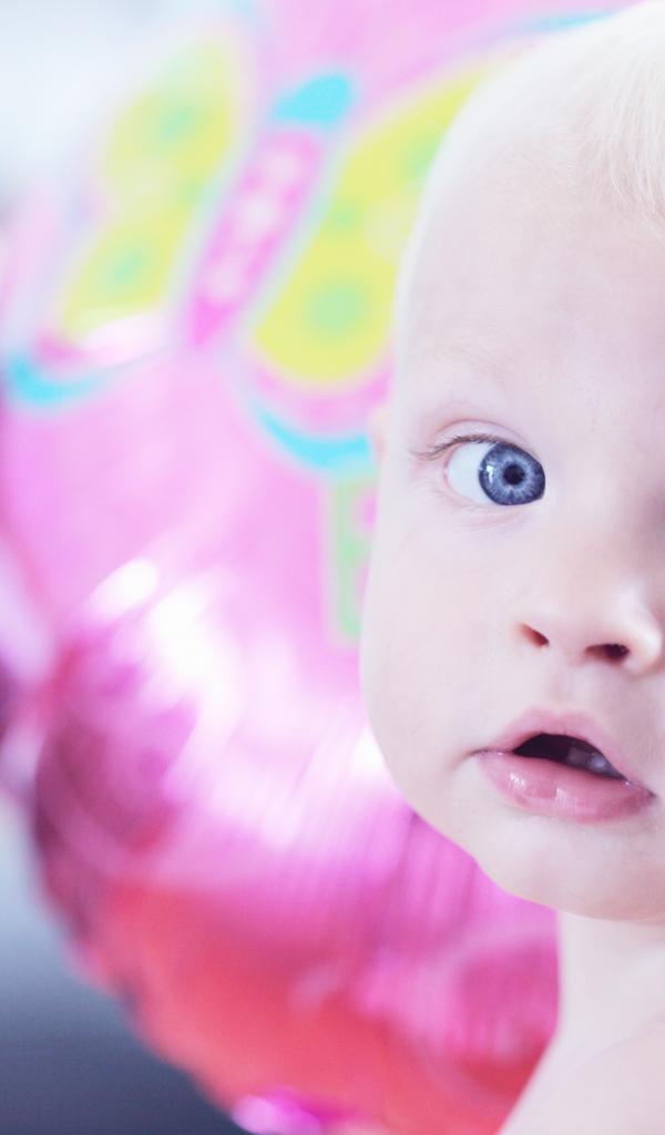 Wallpaper Blue-eyed little boy on the background of the balloon