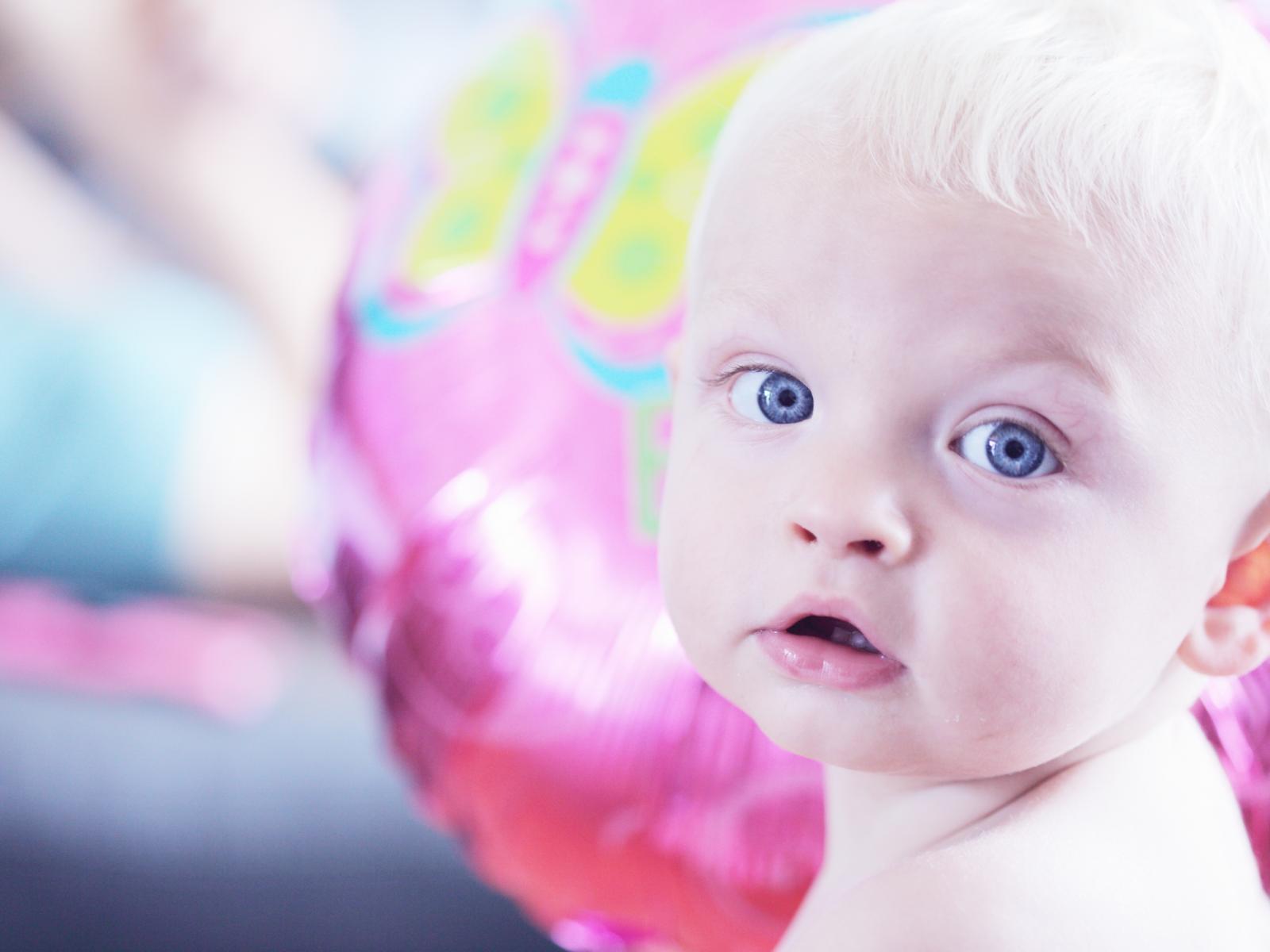Wallpaper Blue-eyed little boy on the background of the balloon