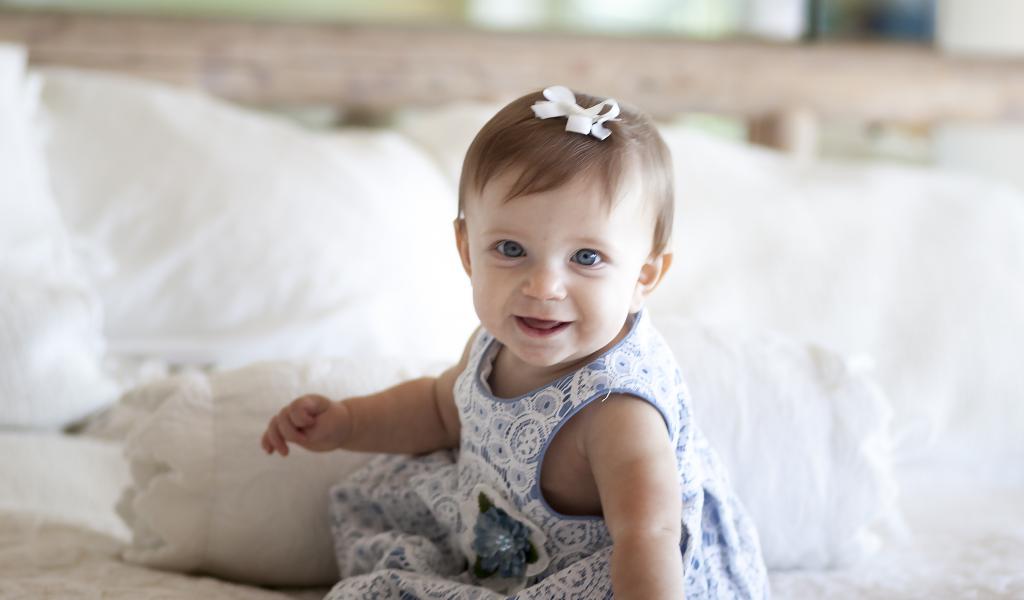 Wallpaper Smiling little girl in a beautiful pink dress