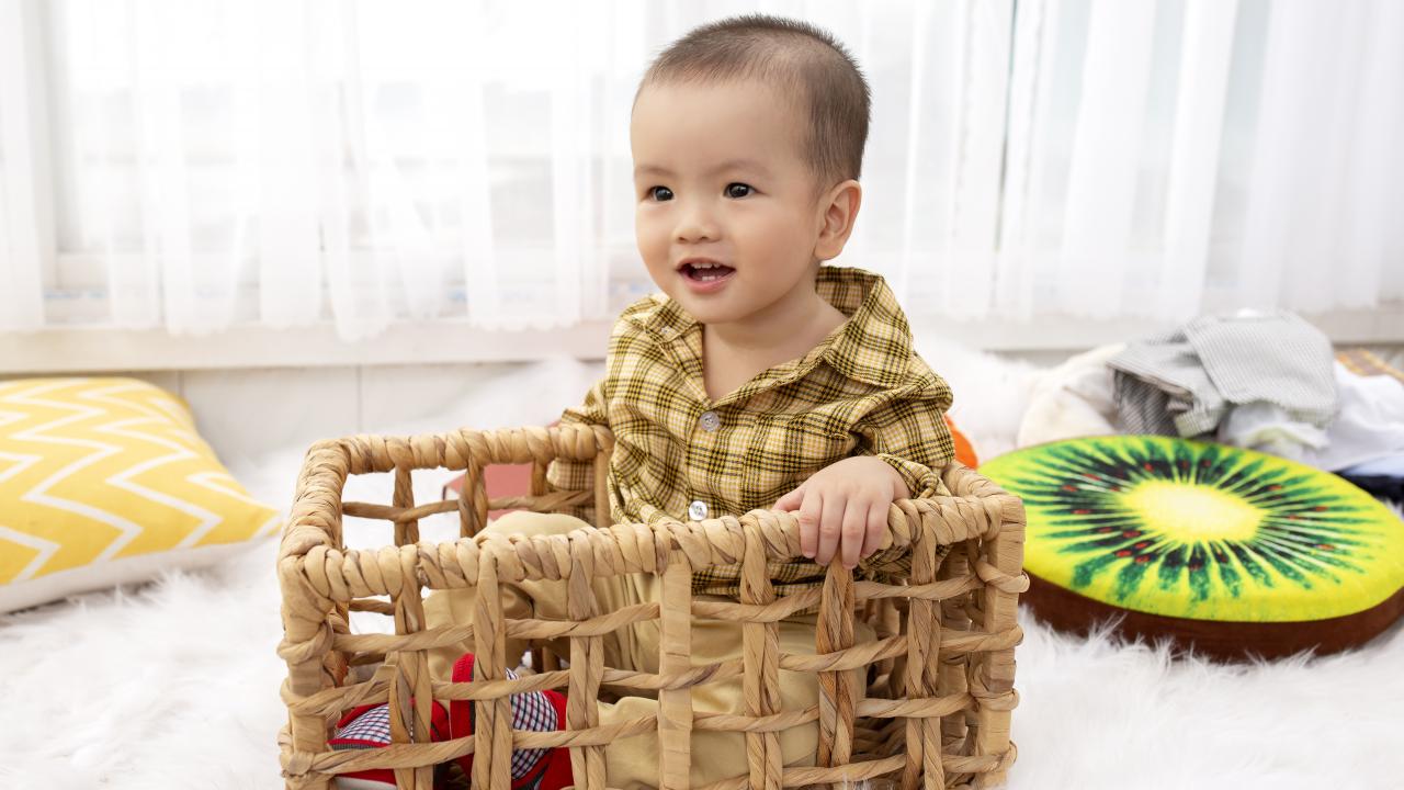 Wallpaper Little boy sitting in a box in the playroom