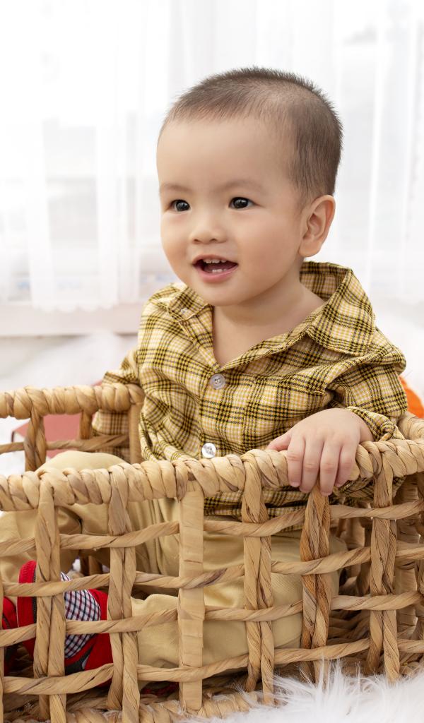 Wallpaper Little boy sitting in a box in the playroom