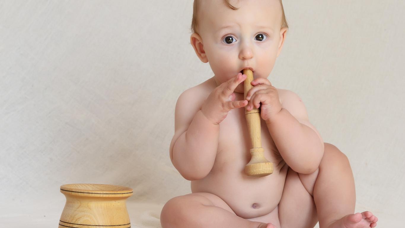 Wallpaper Little boy with wooden mortar