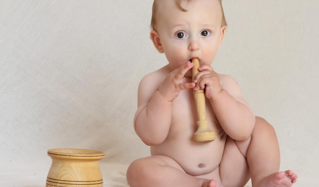 Wallpaper Little boy with wooden mortar