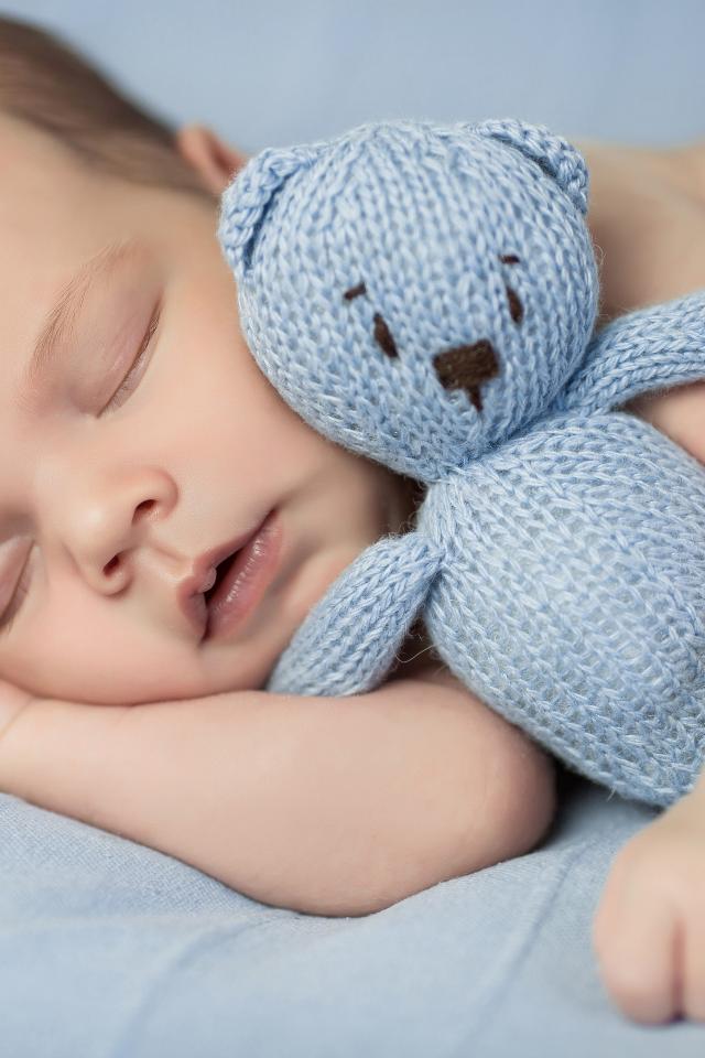 Wallpaper Small infant baby with knitted teddy bear