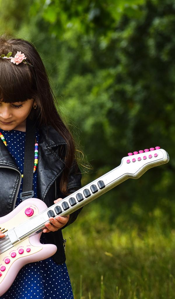 Wallpaper Little girl with toy guitar
