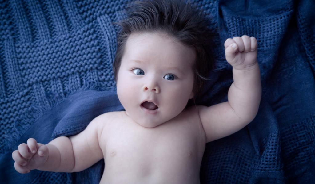 Wallpaper Boy with thick hair on a blue bedspread