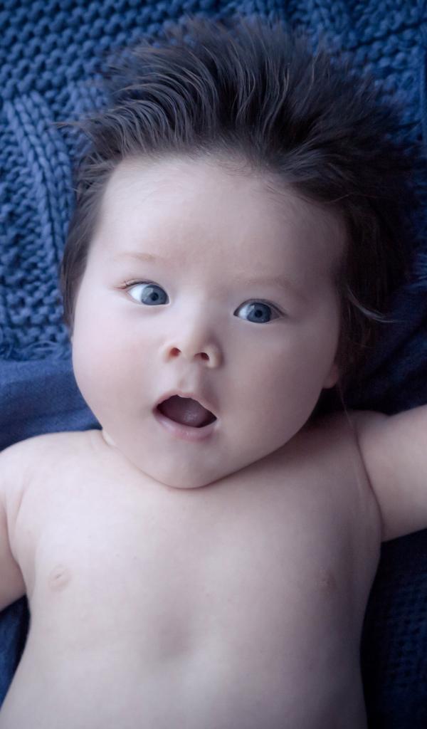 Wallpaper Boy with thick hair on a blue bedspread