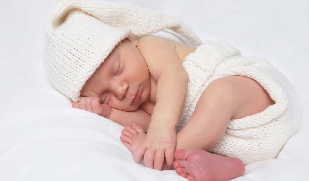 Wallpaper Newborn defenseless baby sleeping in a white cradle