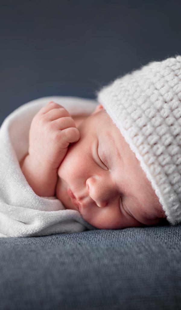 Wallpaper Cute sleeping baby in a white hat with ears