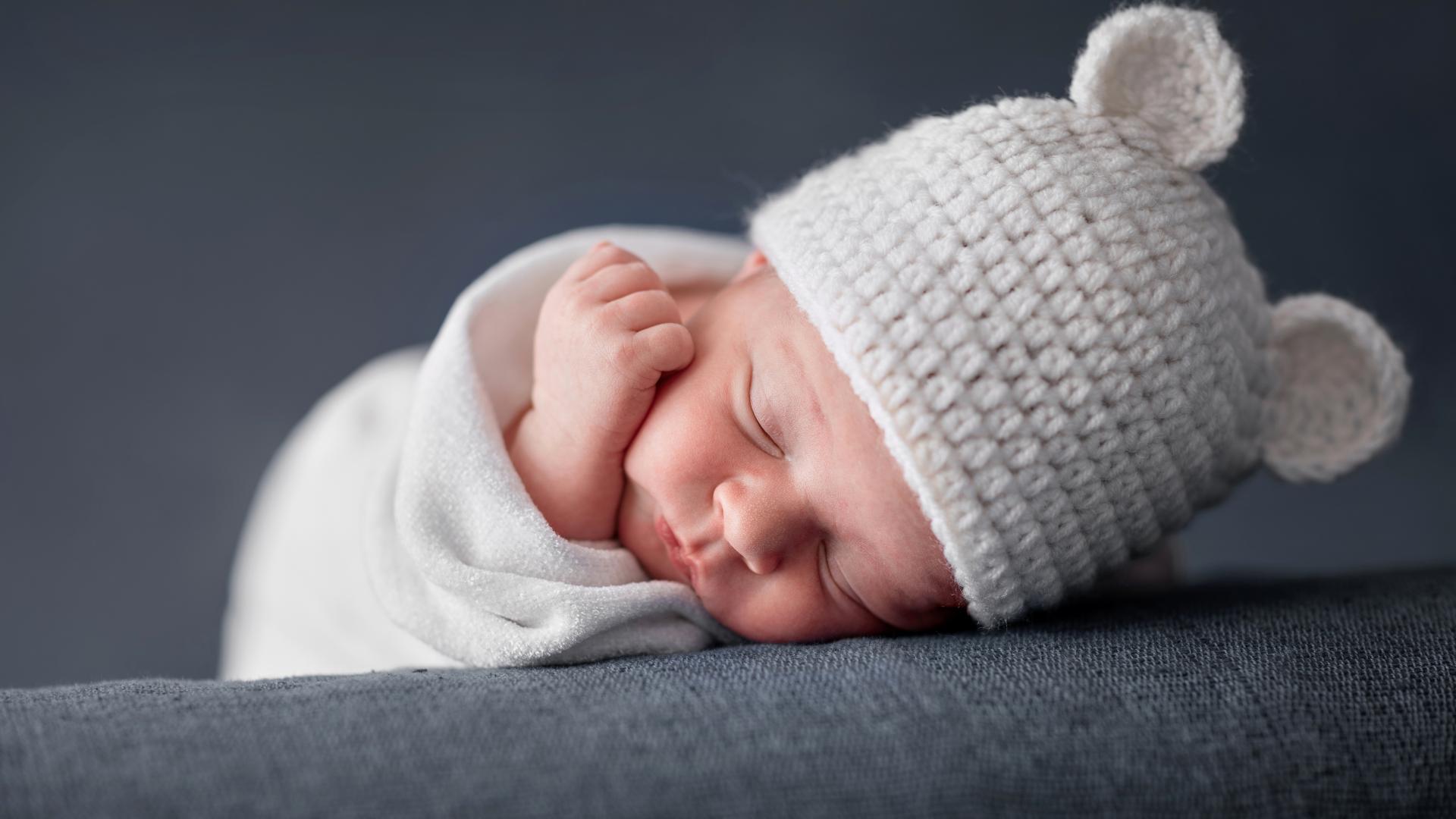Wallpaper Cute sleeping baby in a white hat with ears