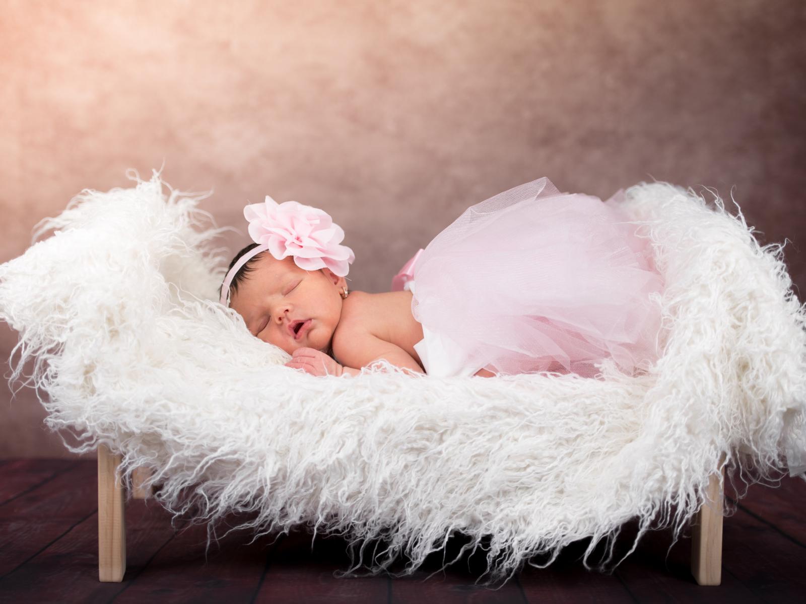 Wallpaper A girl in a beautiful pink skirt lies on the bed
