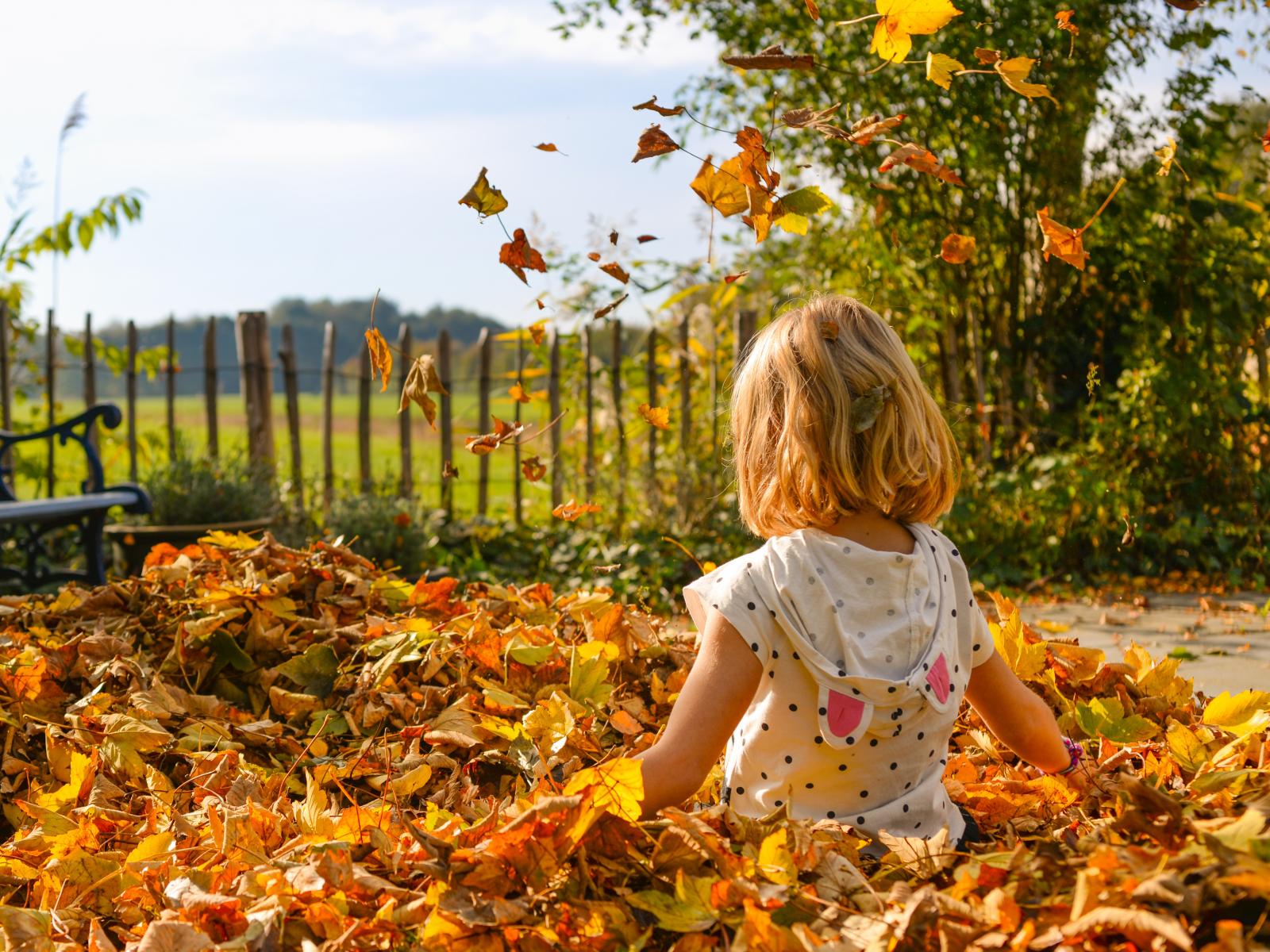 Wallpaper Little girl sitting in dry foliage